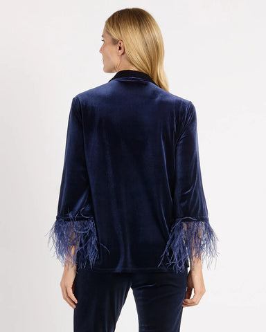 Long sleeve blazer.Buttons at front placket.26 1/2" from top of center back. (Size S)Model is 5'9 and wearing a size Small.Color - Navy. Poly/Spand...