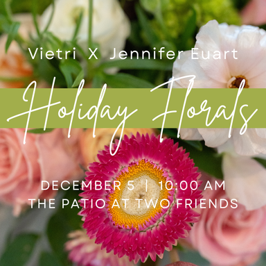 Vietri X Jennifer Euart: Holiday Floral Workshop Join us for a festive, hands-on floral workshop led by Jennifer Euart, where you’ll create your ow...