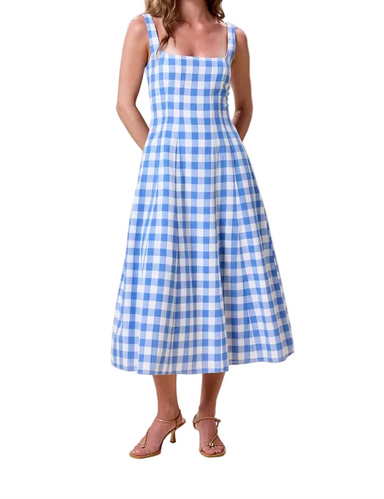 Meet the Ardena Ankle Dress, a timeless spring style with an effortless feel. Designed in classic blue bonnet gingham, it features a flattering fit...