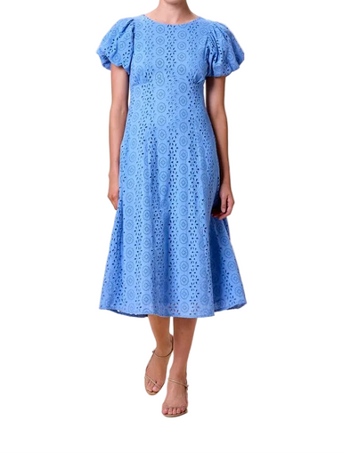 Ethically handmade in India from 100% GOTS certified organic cotton eyelet, the Leslie Midi Dress features a feminine puff sleeve and princess seam...