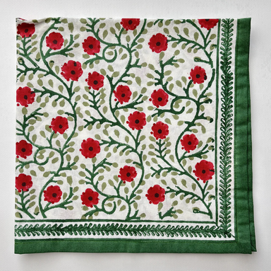 The festive Pomegranate Vine Napkins will be your hosting "go-to" this holiday season! Available as a set of four, these block-printed napkins fea...