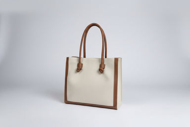 The Linen Tote combines timeless elegance with everyday practicality. Crafted from rich cognac leather and linen, this classic tote measures 14" wi...