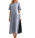 The Rina Dress is a relaxed midi dress crafted from a comfortable stretch pointe knit fabric. Features short sleeves, a classic crew neckline, and a contrasting pleated side panel with adjustable tie details for a modern, elegant touch.