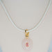 An oval enamel pendant accented with a pink stone and 14k gold plating, set on an adjustable 26” coconut cream leather cord. A soft pop of color that layers beautifully or stands on its own.