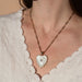 Malene heart charm in luminous mother of pearl—hand-carved stone, cubic zirconia, and high-shine gold on a large round bail for versatility. Everything you want and need to make a statement.