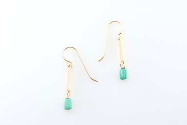 Hand made in South Carolina 1/2 Forged 14k GF Vertical Bar with Small Turquoise Rectangle Drop