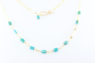 Hand made in South Carolina Small Turquoise Rectangles on 14k GF Paper Clip Chain 16"-18" Adjustable Length