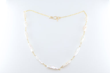 Hand made in South Carolina Connected with Small Paper clip Links on 14k gf Chain Freshwater Biwa Pearls 16"-18" Adjustable Length