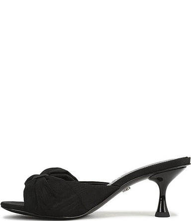 An asymmetric bow adds a burst of modern sophistication to this effortlessly modern sandal. 2 1/4" heel Textile upper/synthetic lining and sole