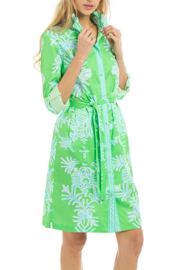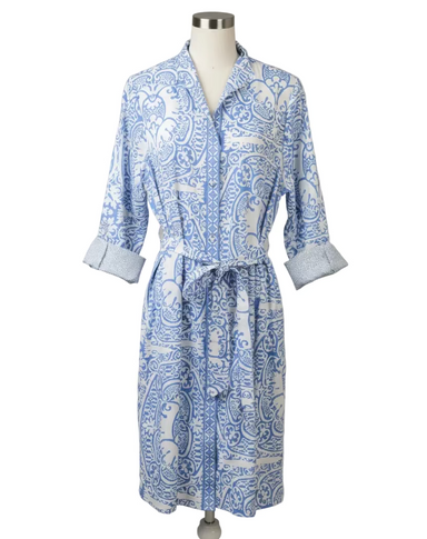 The Elizabeth Dress in Peri Veneto combines timeless elegance with practical details. Crafted from 100% cotton, this piece features button-front st...