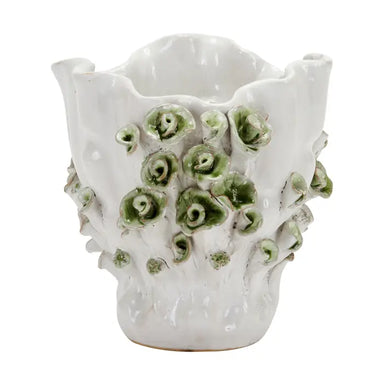 Glazed ceramic with unique oceanic finish Measures approximately 6" wide X 6.5" tall Eco-friendly and ethically sourced
