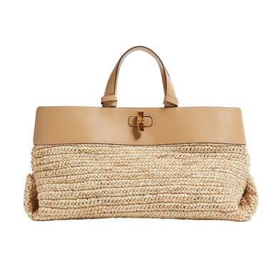 Timeless classic designs take center stage with hand-crochet raffia accented with rich calfskin and bamboo. The Park speaks to our uptown girl se...