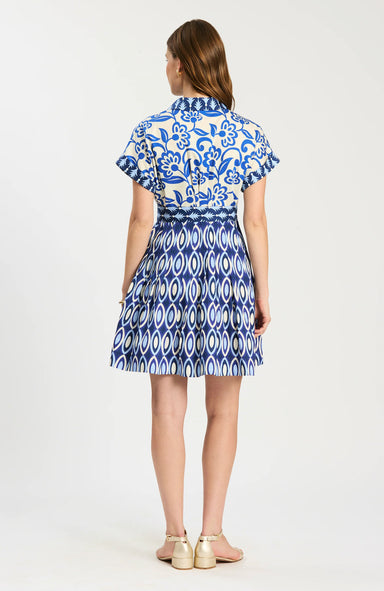 Point collar Button front Cuffed cap sleeve Pleated skirt Self-tie belt Side seam pockets 100% Cotton Machine wash cold, line dry