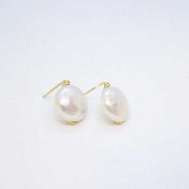 Beautiful Freshwater Coin Pearls with a hand forged post style earwire. 14k Gold-Filled