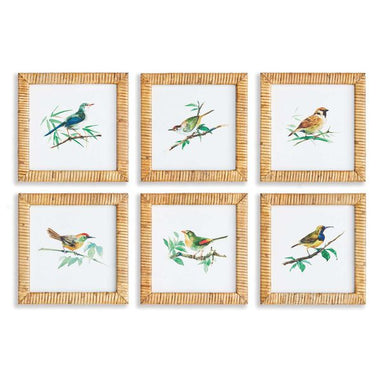 These sweet little songbirds will make your walls sing. Finished off with rattan frames. Separate and tuck them into a bookshelf, or hang them toge...