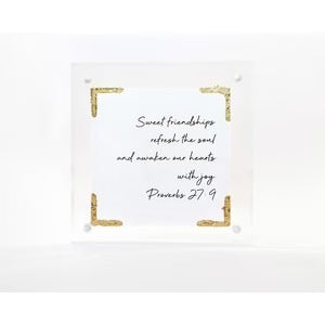 Made from beautiful recycled paper, with gold leaf corners, these frames look so beautiful in any home!4" x 4" acrylic tray