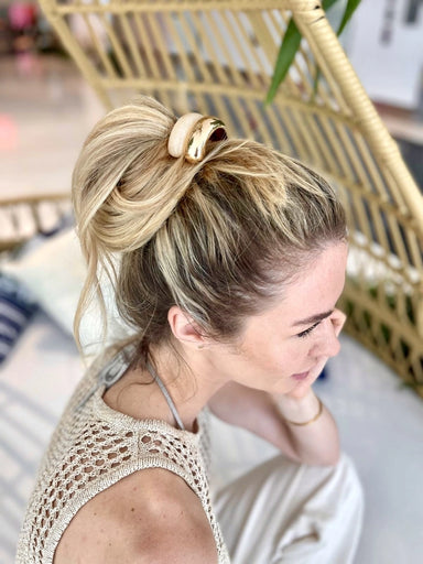 Elevate your hairstyle effortlessly with the Leah Large Single Metal Bar Ponytail Holder, available in elegant gold or silver. Crafted for both sty...