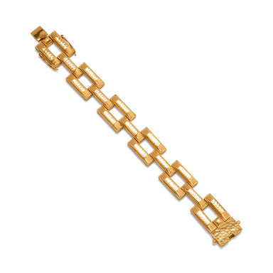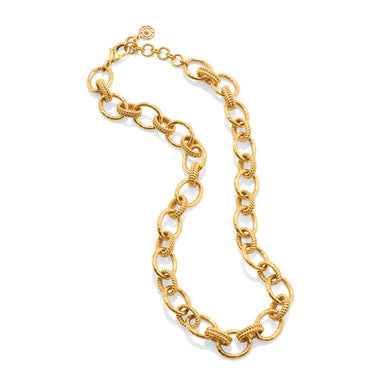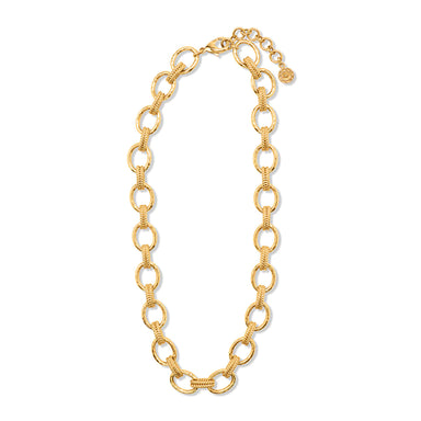 Designed for the modern woman, this statement piece is as timeless as its namesake icon, with abundantly sized links wrought in hammered gold and r...