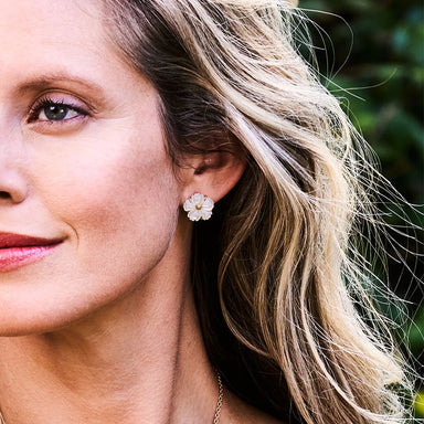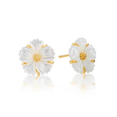 Classic stud earrings are given a fresh, floral twist with this set of exquisitely detailed blossoms of luminous mother of pearl shell with golden ...