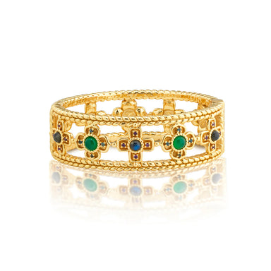 On its own or in a ring stack, this classic band sings in shimmering hammered gold and is a harmony of our iconic berry and thread motif and crysta...