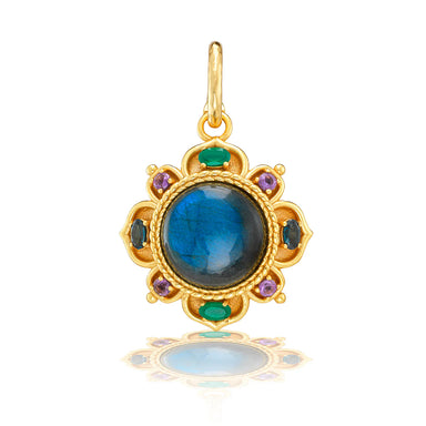This medallion is fit for a queen, featuring a luminous blue labradorite center and Moorish arches bejeweled with amethyst, blue labradorite, and g...