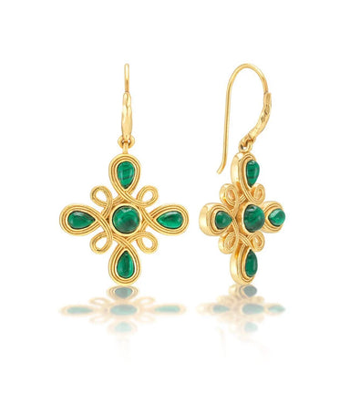 Exquisitely detailed with a golden braided trim and romantic Byzantine silhouettes bejeweled with green onyx and London blue topaz—this statement ...