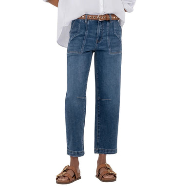 Step into summer with the KUT Ashley High Rise Slouchy Barrel Straight Leg Jean in Optic White. These jeans blend a relaxed, slouchy fit with a t...
