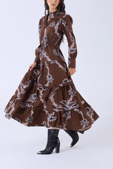 Experience autumn elegance with the Cleobella Mercedes Midi Dress in Mercado Print. This sophisticated piece features a flattering V-neck and elbow...