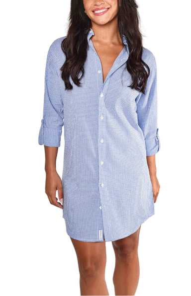 Collar neckline Button down style Long sleeves Button sleeve cuffs Optional sash belt Cotton poplin 100% cotton Machine wash on cold, gentle c...