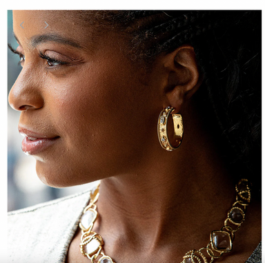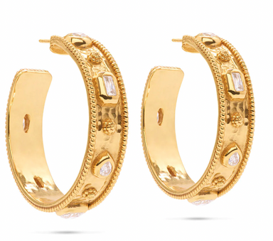 Our best-selling Baroness Collection NEEDED a hoop. With bezel-set simulated diamonds the Baroness 1.25” Hoops dazzle from all angles and in the pe...