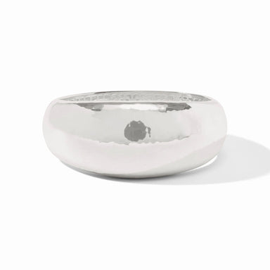 Pure silver plate (tarnish-free) Inner circumference: 7 inches Width: 0.3 inches Closes with spring hinge Julie Vos hallmark