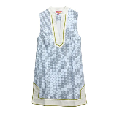 Effortless elegance meets practical style in this sleeveless striped dress. The classic blue and white stripes are elevated by a flattering V-neckl...