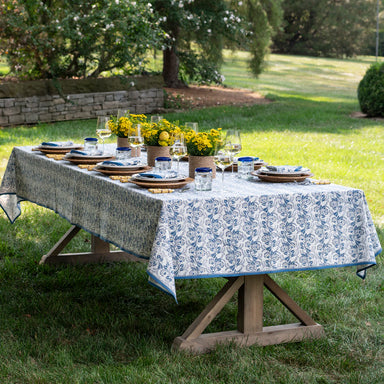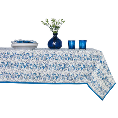 Create a captivating environment with our Climbing Dahlia Lilac Tablecloth. The hand block printed floral design in shades of green and blue stands...