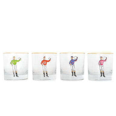 Off to the races! For the equestrian enthusiast, elevate your barware collection with our Jockey Glassware. Featuring four unique jockeys in bright...