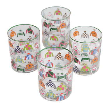 Get ready for the races with the Jockey Silks Bourbon Glass set. Each glass in this set of four is wrapped in a vibrant parade of racing silks, rem...