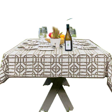 Unveil this timeless classic brown & white hand-block printed Tapestry Chocolate Tablecloth, designed to commemorate the stories shared dur...