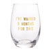 I've Waited 9 Months For This...celebrate the journey to motherhood with this classic stemless wine glass.
