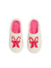 Step into holiday cheer with our Candy Cane Slippers, the sweetest treat for your feet. These cozy ivory slippers feature a festive embroidered design of two crossed candy canes tied up with a bright pink bow. Lined with plush fleece in a bubblegum pink hue, they’re as soft and snuggly as they look. Whether you're wrapping gifts or sipping cocoa, these slippers are the perfect finishing touch to your holiday loungewear.