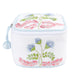 This satin-lined and trimmed embroidered jewelry box is perfect for storing your most valuable and sentimental accessories. Designed with treated pique fabric for stain resistance, it features a zipper closure with a satin pom-pom tassel, ensuring your treasured pieces stay secure and stylishly stored.