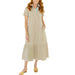 The Maddie Dress combines timeless elegance with everyday practicality. Crafted from 100% cotton, this sophisticated piece features subtle tan and white stripes accented by a striking teal collar detail. A charming ruffle hem adds movement and dimension, while functional pockets provide convenience without compromising style. Perfect for warm-weather occasions, this versatile dress transitions effortlessly from casual outings to refined gatherings. Care instructions: wash cool and hang to dry to maintain its quality and vibrant colors.