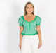 Offered in an emerald green cane print, The Addie Top is made to pair with the Addie Skirt, but it looks great alone with a pair of pants as well!