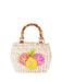 The structured silhouette is complemented by glossy bamboo handles that add a natural, refined touch. Lightweight and compact with a secure zip closure, this bag is the perfect statement piece for warm-weather occasions and resort styling.