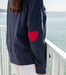 Elevate your everyday wardrobe with the Amour Heart Navy Applique Tee. Crafted from *00% premium Turkish cotton, this ultra-soft oversized long-sleeve top combines a classic coastal aesthetic with a whimsical twist. Featuring a relaxed **drop-shoulder silhouette and charming red heart elbow patches, it’s the perfect blend of effortless style and breathable comfort. Whether you're heading to a morning coffee date or enjoying a sunset stroll, this navy crew neck tee is your new favorite staple.