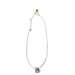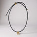 Leather necklace with signature square acrylic jewel center in an enamel setting. Adjustable sizing with knotted loop.