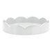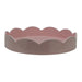 A pretty round scallop small tray finished in 20 coats of high gloss lacquer, hand polished between each coat. The base is painted black satin and embossed with our logo.