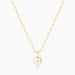 14k gold plated carved mother of pearl heart charm with cubic zirconia on 3.4 mm Finn medium elongated chain necklace. Fully adjustable up to 18".