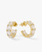 Step into everyday luxury with The Queen's Hoops .75" in radiant gold. These dainty yet bold minimalist hoops prove that small size can deliver maximum sparkle. Featuring larger, brilliant white simulated diamonds set closely together, the classic 3/4 inch diameter offers a refined, elegant look that is perfect for everyday wear. As part of our best-selling Queen's Collection, these hoops are crafted to provide timeless appeal and enduring classy style.