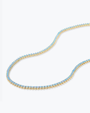 Add a vibrant splash of color to your jewelry rotation with the Not Your Basic Blue Opal Tennis Necklace. This stunning statement piece reimagines ...