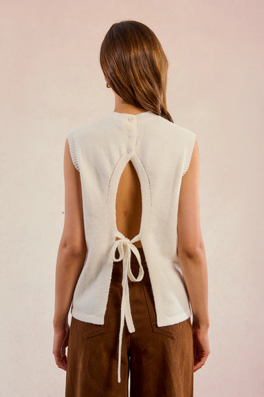 $98.00| /Sleeveless sweater-Straight fit-Neckline close to the neck-Buttoned at the upper back-Slit at the back, with a tie tie-Length from the shoulder 23....