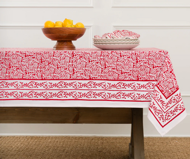 With its stunning hand-block printed palm trees and chic geometric border, our Palm Tree Green Tablecloth brings a breath of fresh air to your tabl...